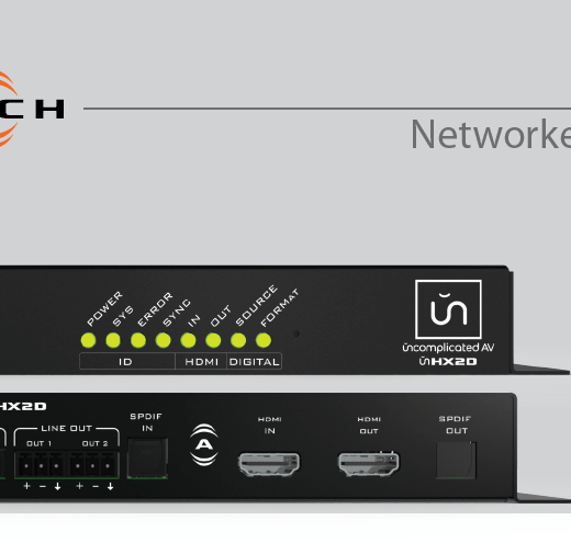 The unHX2D is a Dante™ enabled HDMI de-embedder/embedder designed to bridge 2-channel PCM HDMI audio to/from a Dante™/AES67 audio network. In addition, the unHX2D includes two line level analog inputs and outputs that can be independently bridged to/from a Dante™/AES67 audio network. An adjustable audio delay buffer is included on the Dante™ output for audio and video lip sync. The unHX2D features flexible audio routing between system input sources and outputs, and facilitates bridging audio from either video sources or monitors to a Dante™/AES67 network. The HDMI output operates as a pass thru repeater of HDMI input video source. The unHX2D also includes installer adjustable EDID management settings via software.