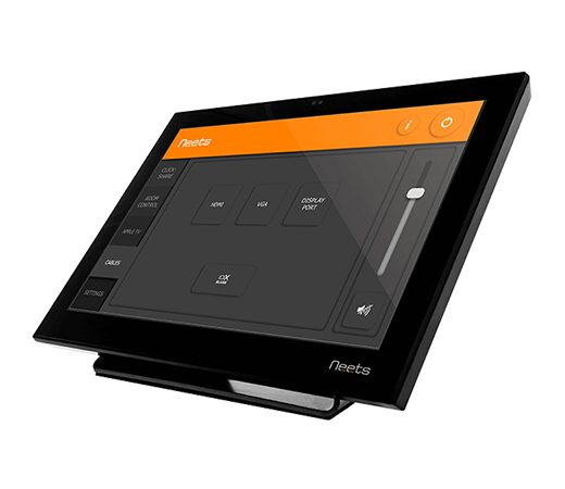 With Neets Touch Panel you can control the entire meeting room or lecture hall from one place. Whether you want to dim the lights, change presenter or turn up the volume, it is as simple as a touch of the panel.