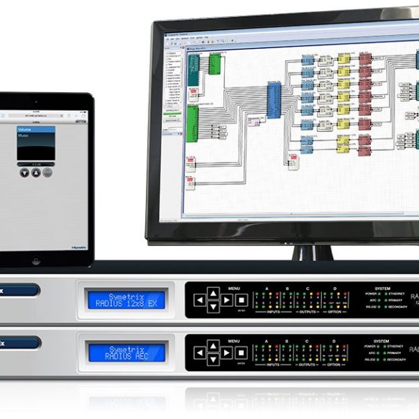 Dante™ in Our DNA. Radius DSPs are equipped with 128 (64×64) redundant Dante channels. The Dante protocol enables ultra-reliable multi-channel audio networking over IP. Together, Symetrix and Dante provide the fastest possible way to implement, control, and maintain a system of networked DSPs and accessories – including third party Dante-enabled end points.Two Models. Radius 12×8 EX is a versatile universal DSP building block. Radius AEC has all the processing power of Radius 12×8 EX with the addition of high performance wide-band acoustic echo cancellation featuring zero latency direct outputs and discrete references.